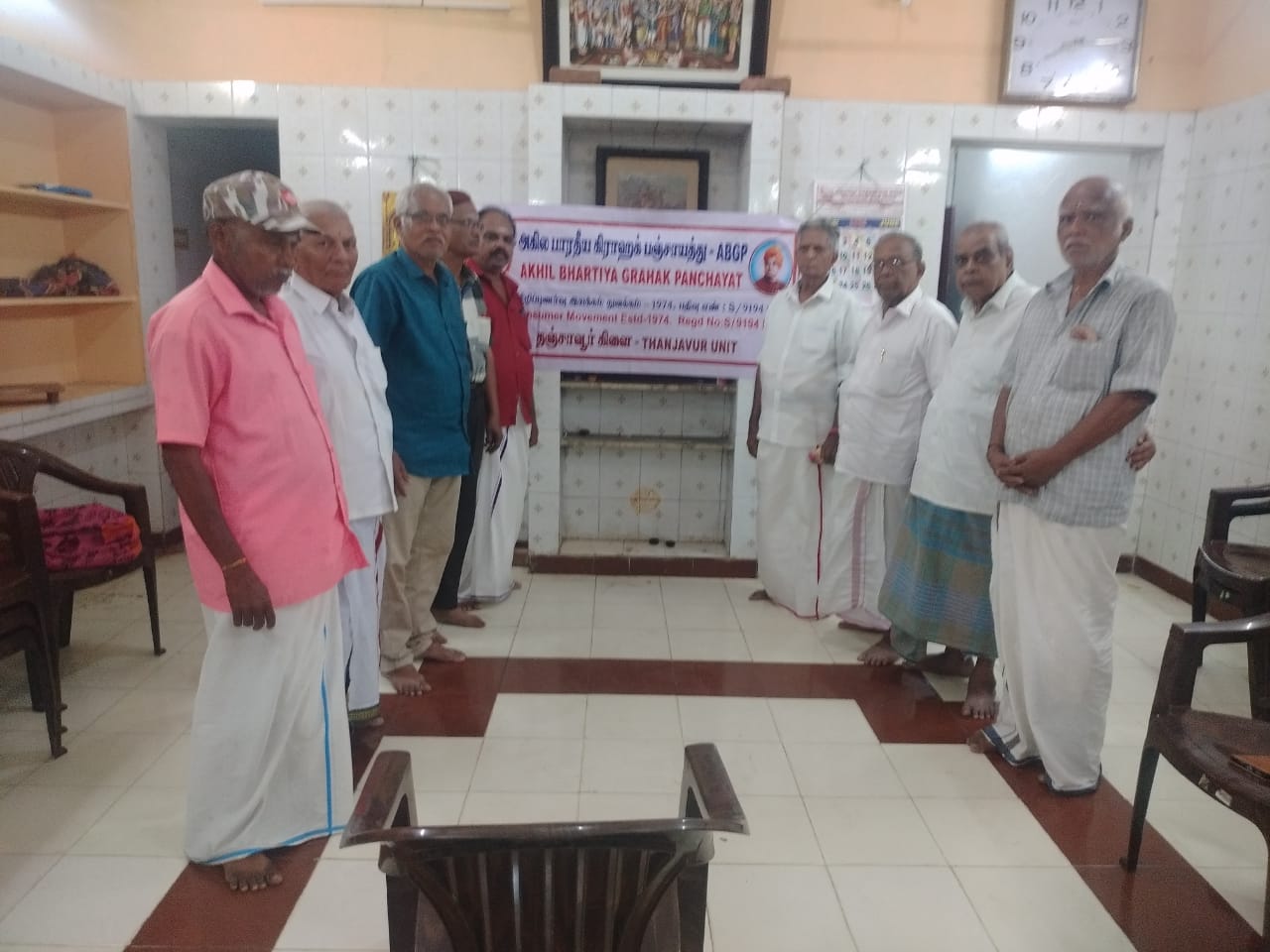 அகில பாரதிய க்ராஹக் பஞ்சாயத்து தஞ்சாவூர் கிளை உறுப்பினர் சந்திப்பு கூட்டம் 28/06/25 மாலை 6.30 முதல் 8.00 மணி வரை தஞ்சை கலைவாணி மன்றத்தில் துணைத் தலைவர் ஜெகஜீவன் அவர்கள் தலைமையில் நடைபெற்றது.தமிழ்நாட்டில் இந்திய ரயில்வேதுறை பயணியர்களுக்கு செய்யும் சேவைகளில் ஏபிஜிபியின் பங்கு குறித்து விவாதிக்கப் பட்டது. தஞ்சாவூர் விழுப்புரம் இரட்டை ரயில் பாதை விரைவில் அமைக்க ரயில்வே அதிகாரிகளுக்கு மீண்டும் கோரிக்கை மனு அனுப்ப முடிவெடுக்கப்பட்டது மதுரையில் கடந்த 22/06/25 நடந்த தென் தமிழ்நாடு நிர்வாகிகள் கூட்டத்தில்,திரு விவேகானந்தன் ஜி தேசிய இணைச் செயலாளர் அவர்கள் தலைமையில் நடந்தபோது, நம் இயக்கத்தின் பாடல் பாடிய பின் ,பக்கத்து மாவட்டங்களில், தாலுகாக்களில் நமது நுகர்வோர் இயக்க கிளை விரிவாக்கம் குறித்து திரு விவேகானந்தன் ஜி, திரு சத்தியபாலன் ஜி தென் தமிழ்நாடு அமைப்பாளர் அவர்கள் வழங்கிய ஆலோசனைகள் பற்றி ஜெகஜீவன்ஜி துணைத் தலைவர் தென் தமிழ்நாடு விரிவாக விளக்கி பேசினார்.அனைவரும் ஏபிஜிபி கிளை வளர்ச்சிக்கு ஒத்துழைப்பு வழங்குவதாக உறுதி அளித்தார்கள்.அடுத்த கூட்டம் ஜுலை மூன்றாம் சனிக்கிழமை19/07/25 அன்று நடைபெறும் என்று தீர்மானிக்கப் பட்டது.